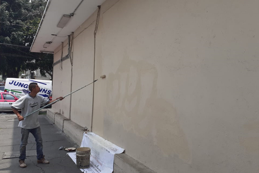 La fachada se encuentra vandalizada en varias zonas de, también se encontrarón manchadas otras áreas de la tienda, se procede con los trabajos de mantenimiento..