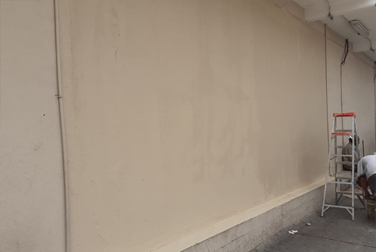 Ya realizada la limpieza del área a intervenir, se procede a dar una primera mano de pintura, se deja secar mientras se intervienen otras áreas afectadas.